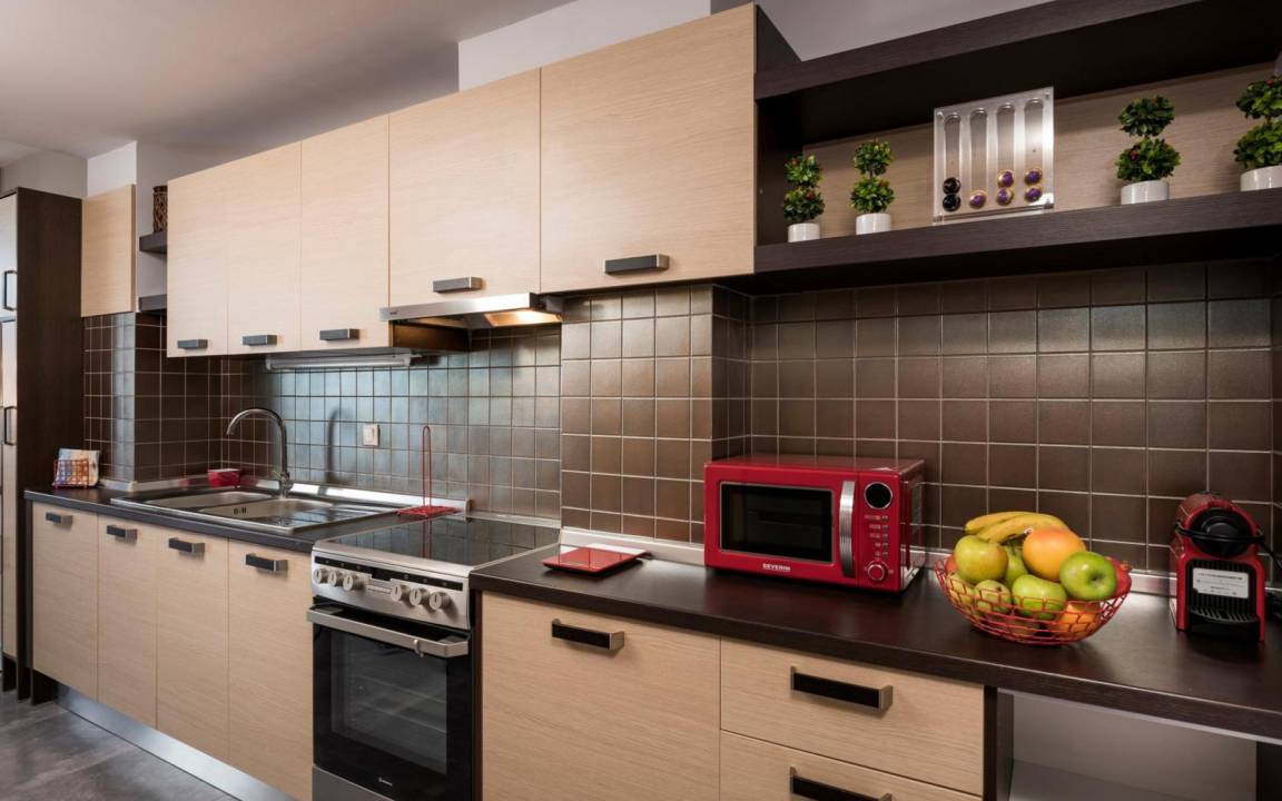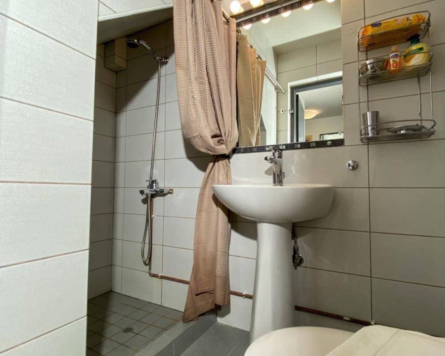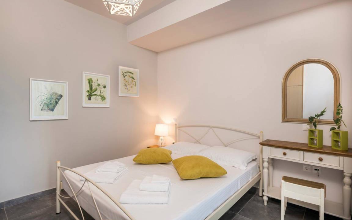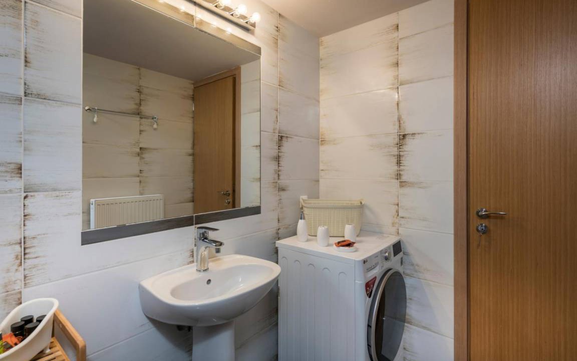 On the ground floor you will find the living room with a modern L shaped sofa, a wooden coffee table, and a 65" LCD Smart TV with Netfix DVD player and PS4. The open space area has a modern fireplace and unique furniture design making the open plan space an oasis of elegance and luxury. On this level you can find 3 of the bedrooms, with each one having a view to the pool area with a unique decoration. The master bedroom has a king size bed with anatomic mattress and pillows, an LCD TV, a glass made shower cabinet for two persons with hydrojet towers next to the bed, a round grand bath, facing the wonderful view, access to a furnished balcony, an en suite bathroom with toilette and sink. A separate space, designed as a boudoir, equipped with styling stuff, a large mirror and a closet. The other 2 bedrooms with each one having a unique decoration and an airy atmosphere are ideal for your body and mind to enjoy the ultimate relaxation. Both bedrooms have king size beds, LCD TVs, modern mirror commodes, spacious closets. There is also access to a furnished balcony, overlooking the pool area and the city. There is also a bathroom with shower on this level.