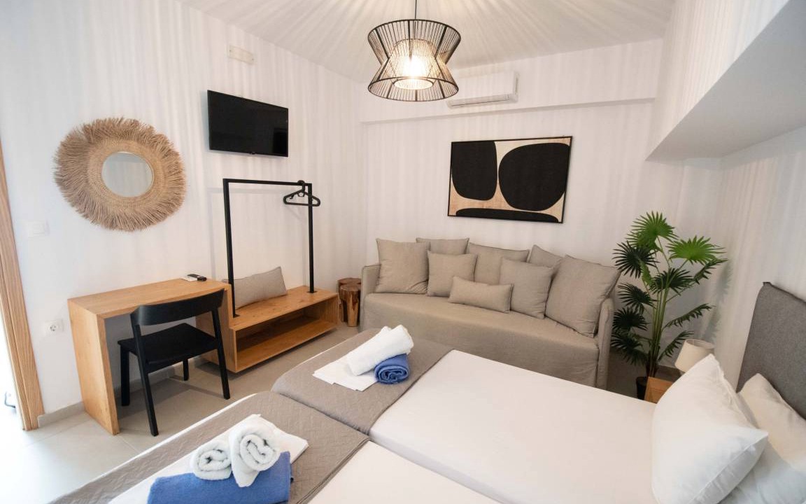 VILLA GRAND RESORT is designed to comfortably accommodate up to 15 people with absolute privacy. It has 7 bedrooms, 3 with double beds with dimensions 2X 1.60 and another 4 with single beds with dimensions 90 X 2m. 5 of the bedrooms have their own bathroom with shower and 2 of the bedrooms have one shared bathroom with shower. All the bedrooms have 32-inch TV with satellite channels and NETFLIX, air condition, wardrobe, mirror, beautiful and careful decoration aimed at your relaxation. On the ground floor of the house the guest can find the first bedroom and a large open space with living room, dining room and kitchen. The living room is equipped with comfortable sofas, a 55-inch TV with satellite channels, NETFLIX connection, and stunning views of the pool, garden and sea. The modern kitchen is fully equipped with electrical appliances, hobs, oven, dishwasher and provides everything you need to prepare and serve your meals. Finally, in the open space is the large dining room, able to accommodate you and your family or friends.The balcony, around the ground floor, has direct access to the pool and garden, a comfortable outdoor lounge and great sea and mountain view.On the first floor the guest will find 3 bedrooms, with double and single beds, their own bathroom fully equipped, with shower and hydromassage shower, 32-inch TV with satellite channels and NETFLIX connection, air condition and balcony overlooking the sea and pool. The inner balcony of the first floor offers you direct visual contact with the ground floor of the house.The fifth bedroom of the house is located in the attic. It has the same as the previous ones, its own bathroom, twin beds, aircondition, T.V, elegant decoration and balcony overlooking the garden and the pool.At the basement of the villa there are 2 more bedrooms with single beds, aircondition, T.V, elegant decoration, and one shared bathroom with shower.ExteriorThe outdoor area of VILLA GRAND RESORT will literally take your breath away as it is designed and equipped in such a way as to offer the visitor the ultimate relaxation but also a stunning view of the Cretan Sea and the wild beauty of the mountains. Specifically outside you will find the impressive pool 60 m² and depth 1.40, around the pool there is a variety of furnished areas with comfortable sun loungers, shower, barbecue and a large outdoor dining table. The whole outdoor area is fenced for complete privacy and has parking. Finally, there is wifi access throughout the property. VILLA GRAND RESORT is 9 km from the nearest beach, Stavromenos beach, the nearest town is Perama, at 15 km, while Rethymno is 24 km. The nearest airport is in Heraklion, N. Kazantzakis Airport and is 82 km away. The surrounding area is suitable for hiking and cycling. The village center is 200 m away and there you can find a variety of shops such as a supermarket, a bakery and several traditional taverns and cafes.Do not miss to visit the Archaeological Museum of Eleftherna, just 200 m from the house. The three halls of the museum host the whole history of Eleftherna from 3000 BC to 1300 AD with everyday objects and artworks. Live the vacation of your dreams, relax and enjoy the affordable luxury that we have created for you with a lot of care.ServicesServices included in the price• cleaning every third day• change of sheets and towels every three days• Pool towels are provided• garden maintenance• pool cleaning and maintenance two to three times a week (weather dependent)• upon arrival, water, soft drinks, coffee and basic cooking materials.• playpen and high chair for babies on requestServices on request at an additional cost• doctor• massage• daily cleaning• car rental• transfer to and from the airport• photographer• chef• personal trainer We are here to try to satisfy any wish you express.Lisence number: 1190215