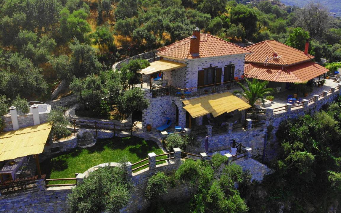 The villa is built of stone in 2021 in the foothills of Pelion, Greece. It is surrounded by green mountains and at the same time 2 km from the transparent Aegean Sea. The climate is very pleasant even when it is very hot. The view is of the sea and the mountain. From the villa there are hiking trails in the mountain where the fauna is very varied and very beautiful. In the surrounding area there are several small villages characteristic of Pelion with small restaurants ( Greek taverns ) where you can try tasty, traditional local dishes. The beaches are clean and equipped to satisfy even the most demanding travellers. You can visit small coves and swim in the transparent waters away from many people.