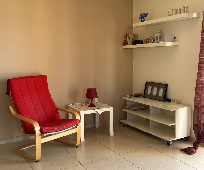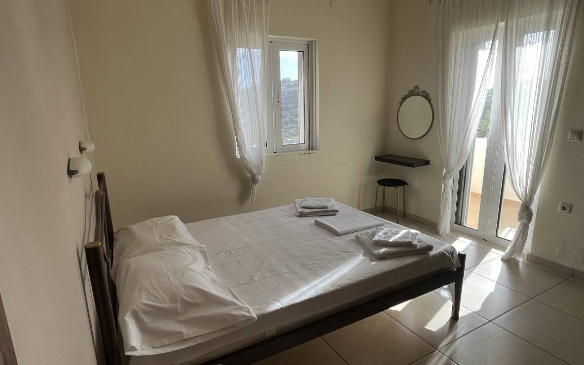 The holiday apartment Spitiko 1 with step-free access and located in South Heraklion Crete in the village of Kamilari is the ideal accommodation for a relaxing holiday with a sea view. The 99 m² property consists of a living room, a well-equipped kitchen, 3 bedrooms and 2 bathrooms and can therefore accommodate 5 people. Additional amenities include high-speed Wi-Fi (suitable for video calls), a fan as well as a washing machine. This accommodation does not offer: air conditioning. This vacation rental features 3 private balconies for evening relaxation.