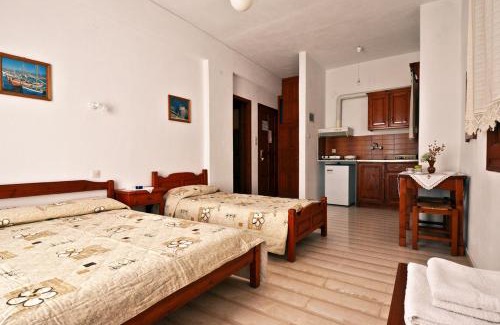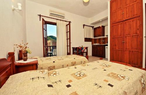 Amid a tree-filled garden, Alexios Studios is quietly located in Neo Klima village of Skopelos. It offers self-catering accommodations opening out to a balcony with mountain views and free Wi-Fi in all areas. The nearest beach is 656 feet away. Simply decorated with earthy tones and warm-colored wooden furnishings, all air-conditioned units at Alexios feature a TV. The kitchenette is equipped with fridge, cooking hobs and kitchenware. Free toiletries and a hairdryer stock the private bathroom. A daily cleaning service is provided. The property can assist with car and bicycle rentals, while a laundry service is also available upon request and at extra charge. Restaurants, supermarkets, cafes and a bakery lie within a 2-minute walk. Kastani and Milia Beaches can be reached within a 2-km radius. Free public parking is available nearby.