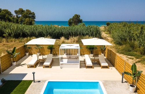 - The villa is just a few meters away from the long sandy beach of Rethymno and its partly organised. There is a private path to access the beach from the villa.