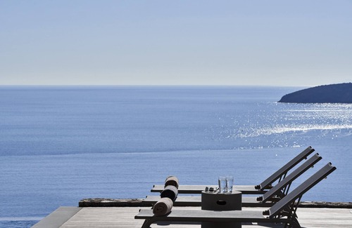 Shades of Blue is designed with extra care and promises to offer to all its guests this unique sense of fullness. The wonderful view travels you to the sky, the daily light sparkles all over the place and at the same time the shade corners allow you to enjoy the alternatives of the landscape. As mwntioned above, The villa is placed 210 meters from the beach "Villes", which can also be a walking distance