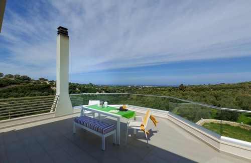 Feggaroules Apartment offers unique combination, the amazing view of the Cretan landscape and the authentic hospitality of our family.Its modern design within the lush olive groves promises a pleasant and relaxing time.The Apartment is comprised of an open plan living room, a dining area, and a fully equipped kitchen and two beautiful bedrooms with private balconies.Located, 14 km east of Rethymno and 3 km from the beach and 1 km of Stavromenos village (there are mini markets and taverns).