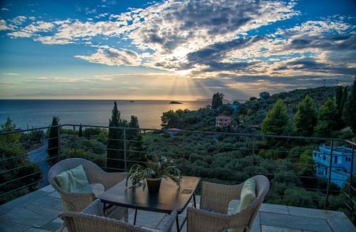 Providing mountain views, Grand View Elios in Neo Klima offers accommodations and a garden. This property offers access to a balcony and free private parking. The vacation home provides sea views, a sun terrace, and free Wifi is available throughout the property. The units at the vacation home come with air conditioning, a seating area, a flat-screen TV with streaming services, a kitchen, a dining area, a safety deposit box, and a private bathroom with a walk-in shower, a hair dryer, and free toiletries. A dishwasher, an oven, and microwave are also featured, as well as a coffee machine and a kettle. At the vacation home, all units include bed linen and towels. For those nights when you'd rather not eat out, you can have groceries delivered. Guests at the vacation home will be able to enjoy activities in and around Neo Klima, like hiking. If you like to discover the area, snorkeling, cycling and fishing are possible in the surroundings and Grand View Elios can arrange a car rental service. Elios Beach is a 8-minute walk from the accommodation, while Hovolo Beach is half a mile away. The nearest airport is Skiathos, 14 miles from Grand View Elios, and the property offers a paid airport shuttle service.
