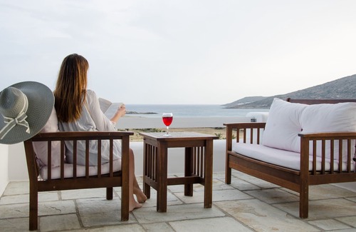 This is a self-catered, functional apartment ideal for a couple or a family of 3. It is new and modern decorated with a fully equipped kitchen a bathroom, and a big terrace with a great view to the beach which is only 180m away. The apartment is located in Manganari Beach, in the south part of the island 25km from the main village. The area is generally peaceful and the visitors may enjoy the most relaxing holiday.