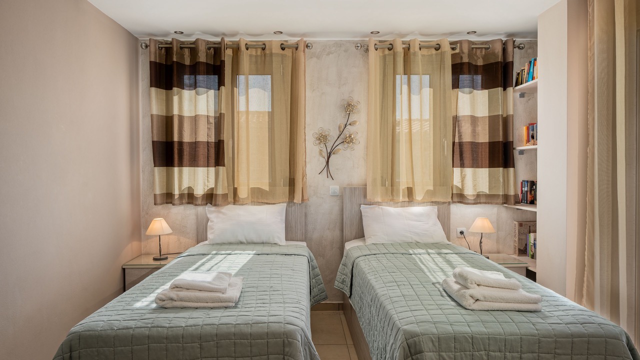 The small buiding of the villa measures 55 m2 with 2 bedrooms, 1 bathroom and has access to the swimming pool. It can host up to 4 persons in its bedrooms.