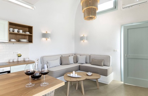 Santo Bloom Luxury Villas consists of two luxury villas inside the same property. Each villa features two bedrooms with a double bed, two bathrooms with shower, living room, fully equipped kitchen, and two swimming pools with sea view. Each reservation is for the whole complex so that the guests can enjoy absolute privacy during their stay in Santorini.