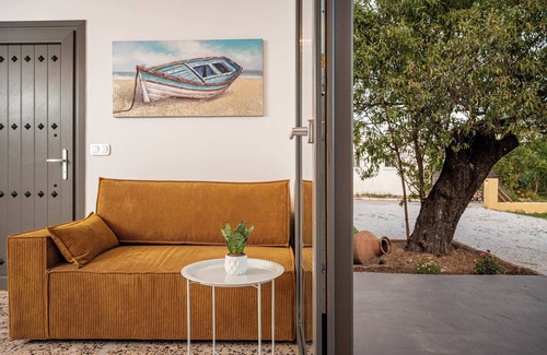 Just 80 meters from the beach, this property with homely vibes, surrounded by lush greenery awaits you for unique moments! The outdoor terrace is the ideal place to enjoy your favorite drink or a meal cooked with local products! The atmosphere is idyllic: the beaches of Psili Ammos (sandy-4km) and Kaladakia (pebbly-8km) & clear blue sky entice for a promenade. The area is rich in restaurants, traditional taverns & bars. Free WIFI and parking