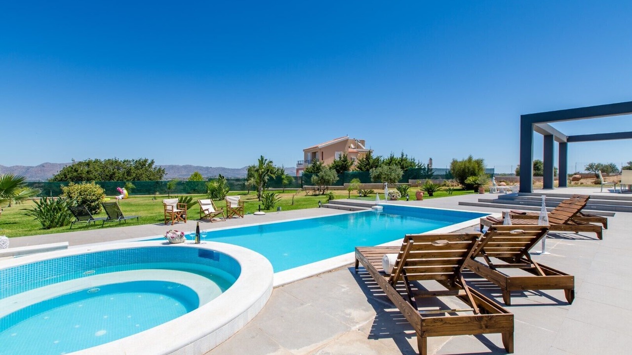 Tennis * Pool with Hydromassage * Walk to Taverna & Supermarket is located in Kounoupidiana. Tennis * Pool with Hydromassage * Walk to Taverna & Supermarket provides accommodation, featuring Private Pool, Bedding/Linens, Barbecue/Outdoor Cooking, among other amenities. This Villa features Private Pool, Bedding/Linens, Barbecue/Outdoor Cooking, to make your stay a comfortable one.