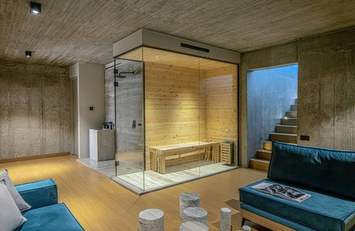 The whole space is decorated with tasteful aesthetics as there are big glass windows so that the visitor can enjoy the amazing view that is offered. Sauna made from wood and luxury marble is in the basement giving the relaxation required.