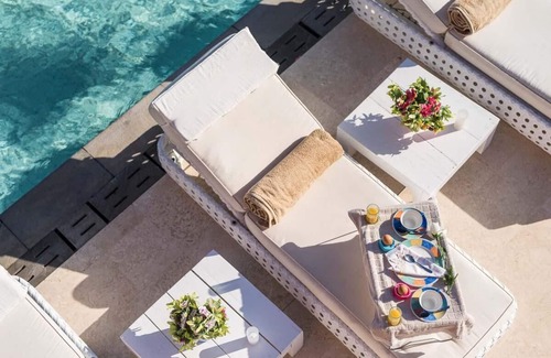 The villa offers beautiful panoramic views of the Kalathas bay and some the most amazing sunsets that will surely be unforgettable to its guests.
