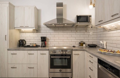 The fully equipped kitchen invites you to unleash your culinary prowess, so you can prepare delicious meals just the way you like them. It boasts modern amenities, including a dishwasher, stove, hobs, microwave, and espresso and filter coffee machines, ensuring convenience and versatility for culinary enthusiasts.